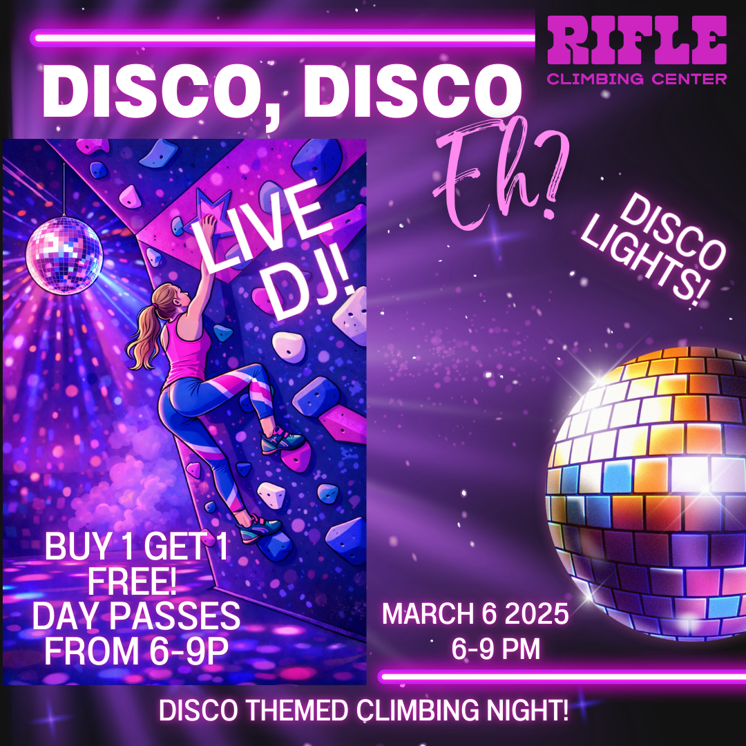 Whether you’re coming to send your project under the disco ball or just vibe with your crew and climb to the beat, this is your excuse to dust off the neon and party on the wall.