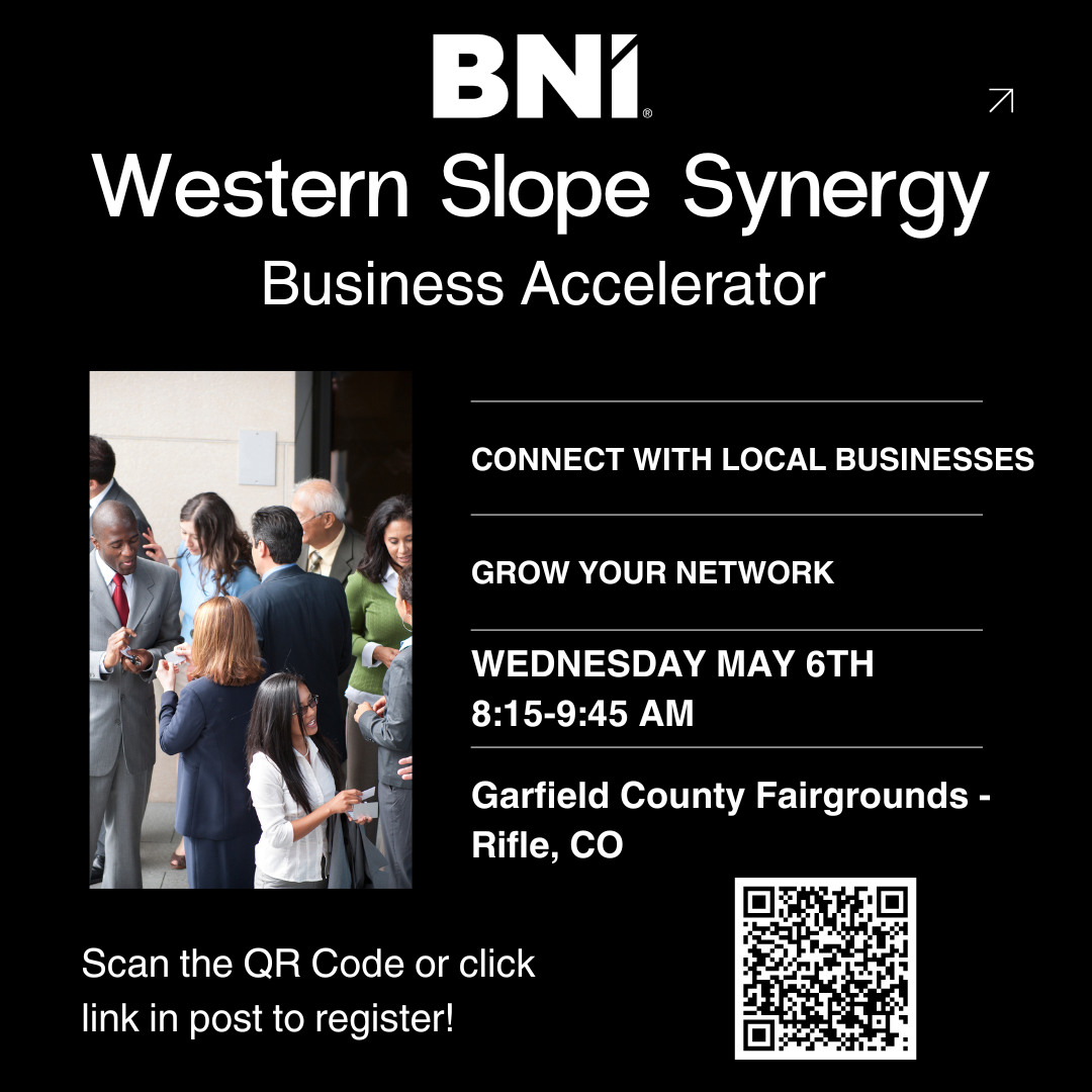 Come visit us on Wednesday, May 6th from 8:15-9:45am for the exciting BNI (Business Networking International) ribbon cutting ceremony on our 1st ever visitor day! We will be at the Garfield County Fairgrounds in the North Hall.